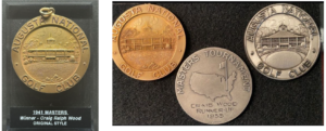 As he explained, there were no medals or trophies handed out in the earliest Masters years. Augusta, still financially strained in the 1930s, was focused first on paying prize money. Petro notes that the club later developed a pattern of issuing newer awards retrospectively. The first physical winner’s award, he says, was a wooden plaque with a silver sheet and gold bars naming the winner and score. Those plaques were awarded beginning with the 1942 champion and retrospectively to earlier winners back to 1934. Later, in 1960, Augusta replaced those with the bas-relief clubhouse plaques, and in 1993, it moved to the current 3D silver clubhouse trophy for champions.