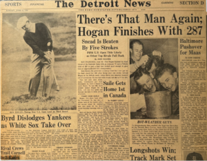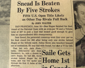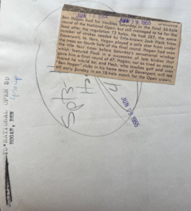 That is why this week, while digging through GHS President George Petro’s collection, I kept coming back to a terrific Hogan grouping that says a lot more than it first appears to say: a period press photo of Hogan at the 1955 U.S. Open, plus accompanying newspaper coverage that captures the championship at a moment when the story still seemed headed one way, even though history was about to take a sharp turn the other.